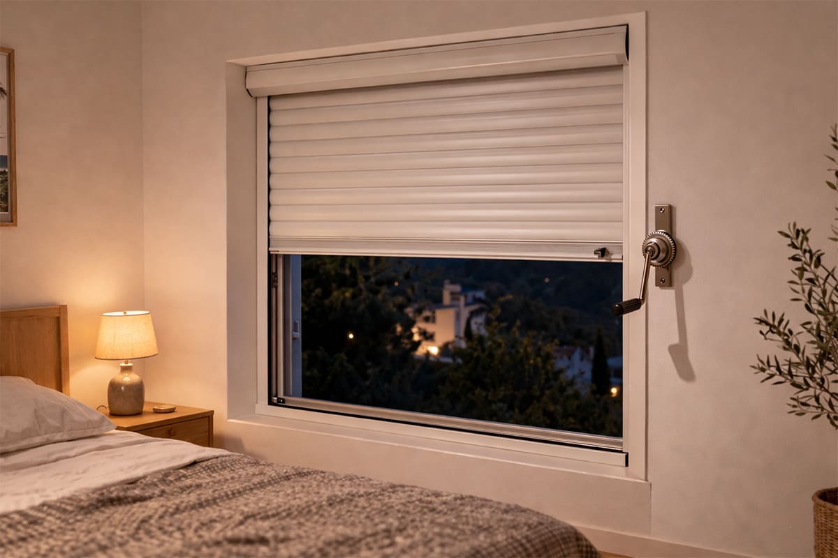 Installation de volet roulant manuel sur mesure avec Texture Aluminium